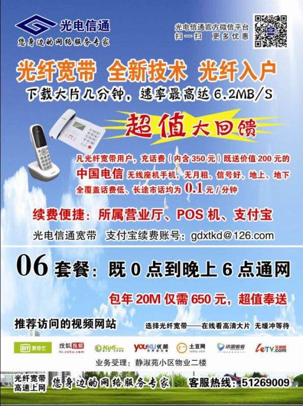 光电信通光纤宽带推出“06套
