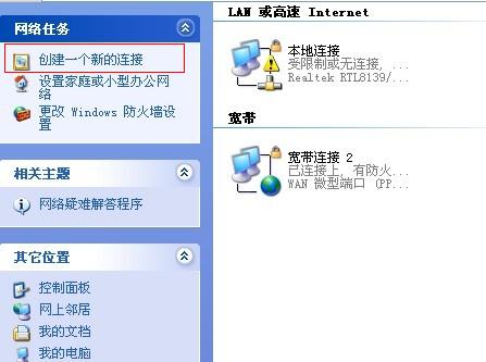 XP如何创建新的宽带连接